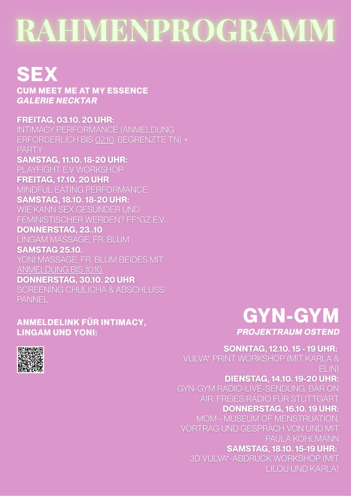 GYN-GYM ist Teil der Veranstaltungsreihe „SEXGYNGYM“, die in Kooperation mit